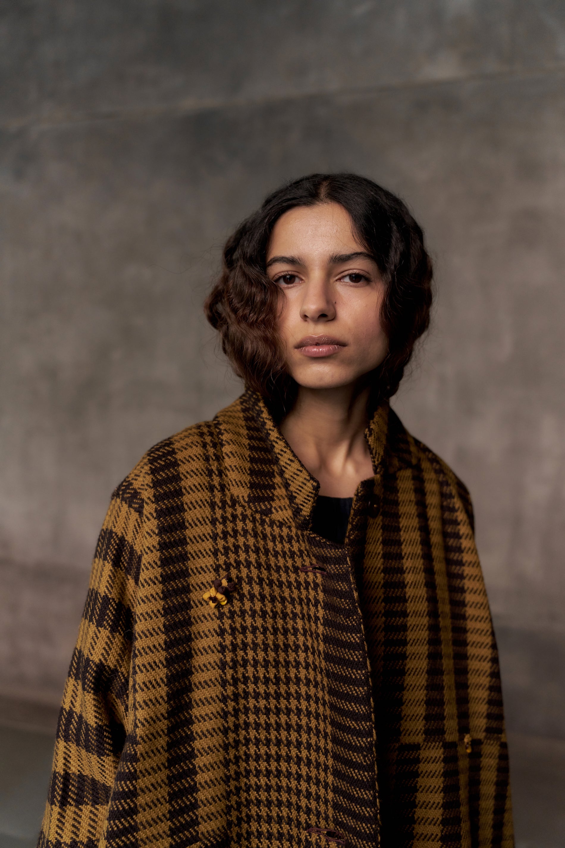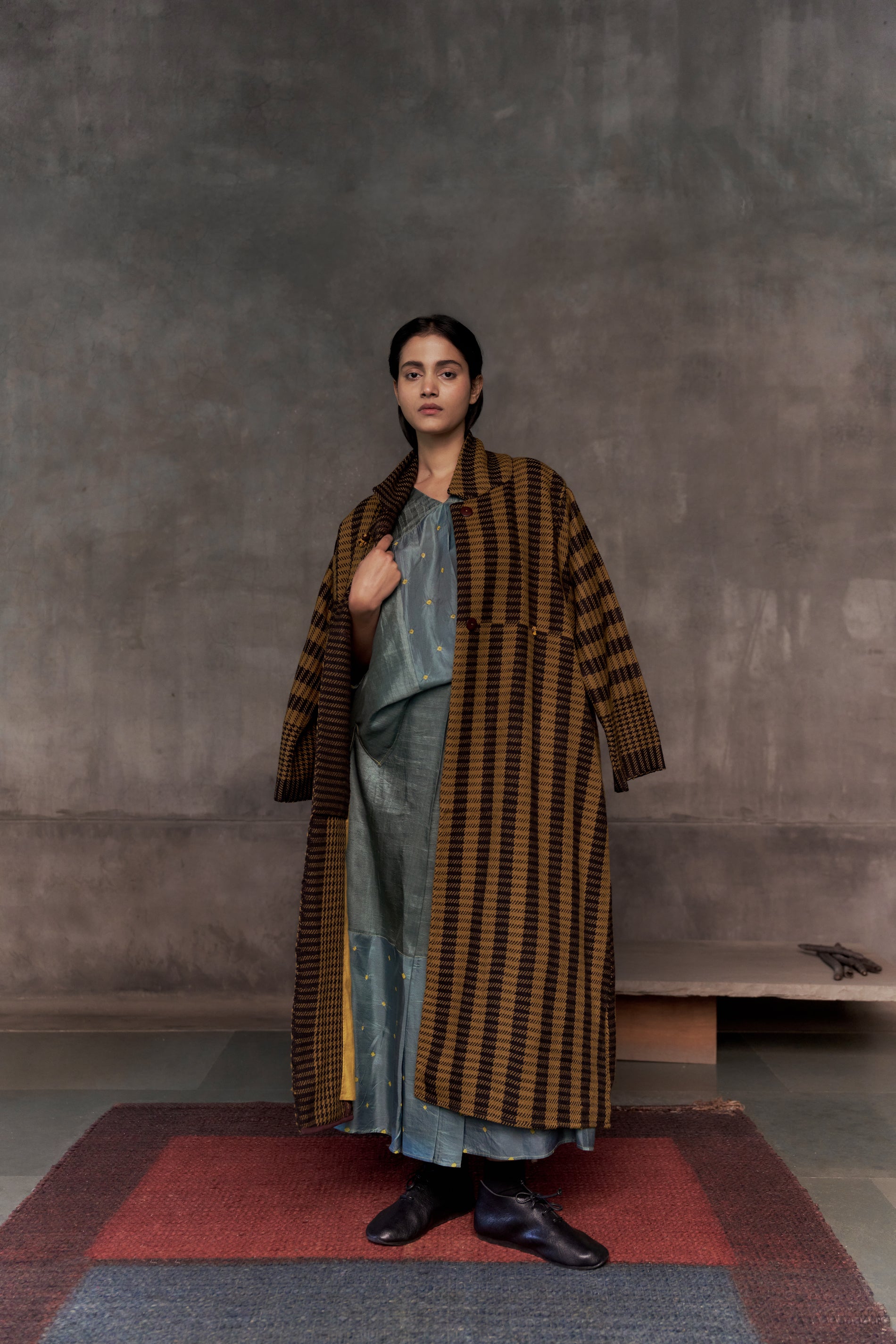A beautiful juxtaposition of pattern and colour, featuring a houndstooth border and a striking interplay of shades. This one is truly a statement piece.