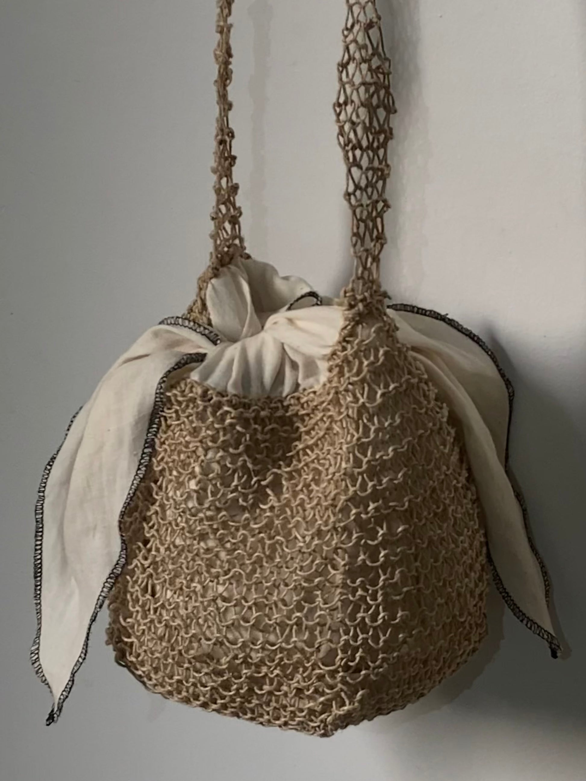 Coarsely knit jute bag with lined cotton. A fun and earthy alternate to the regular saddle.