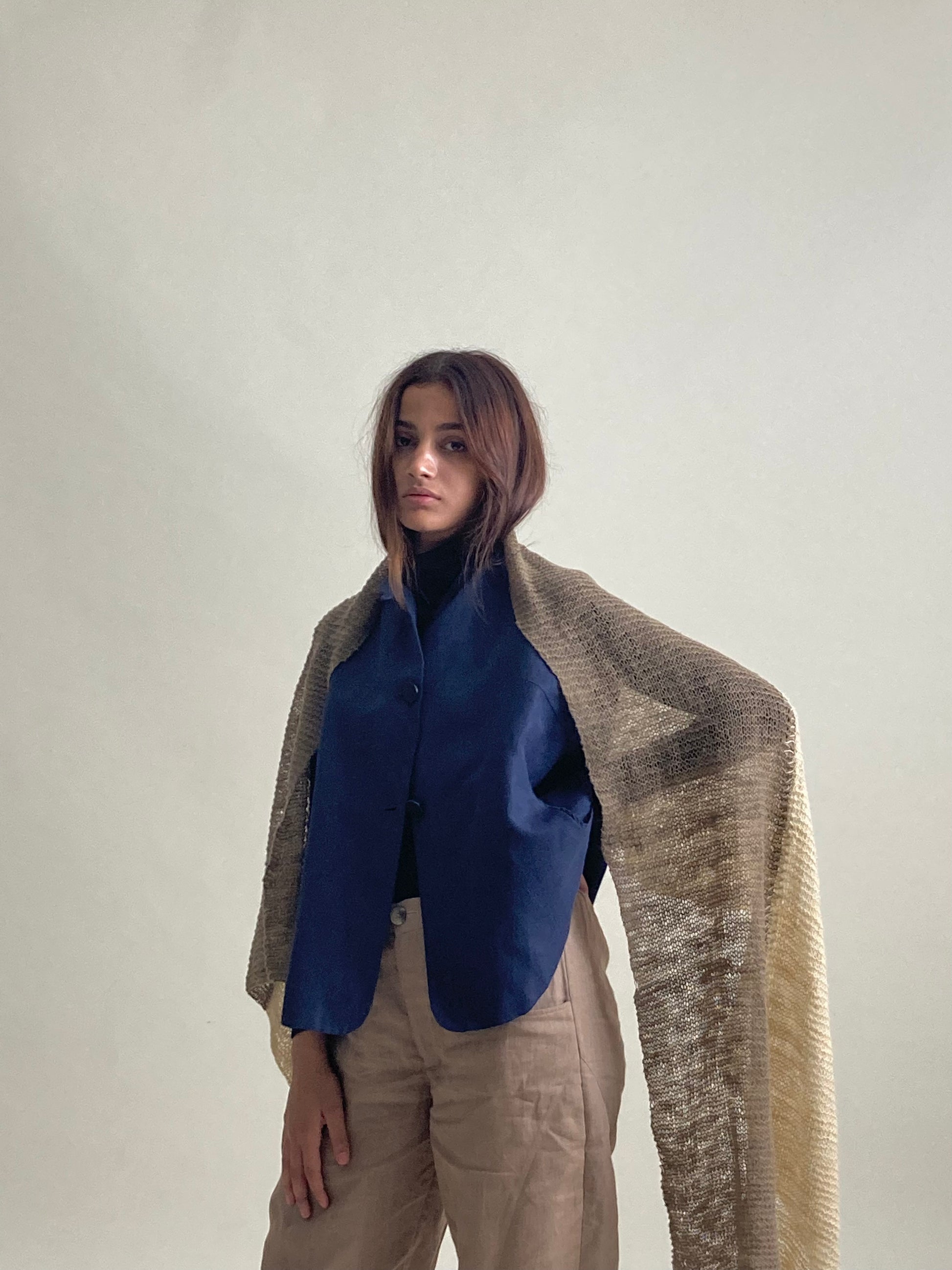 Coarse hand knitted Mufflers in contrast shades of purple/green, white/ash brown,