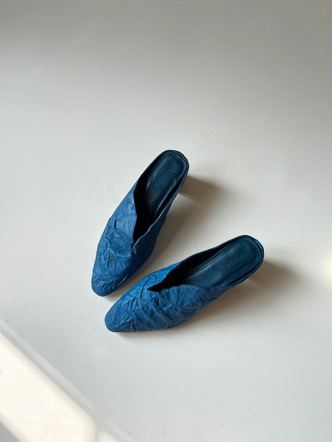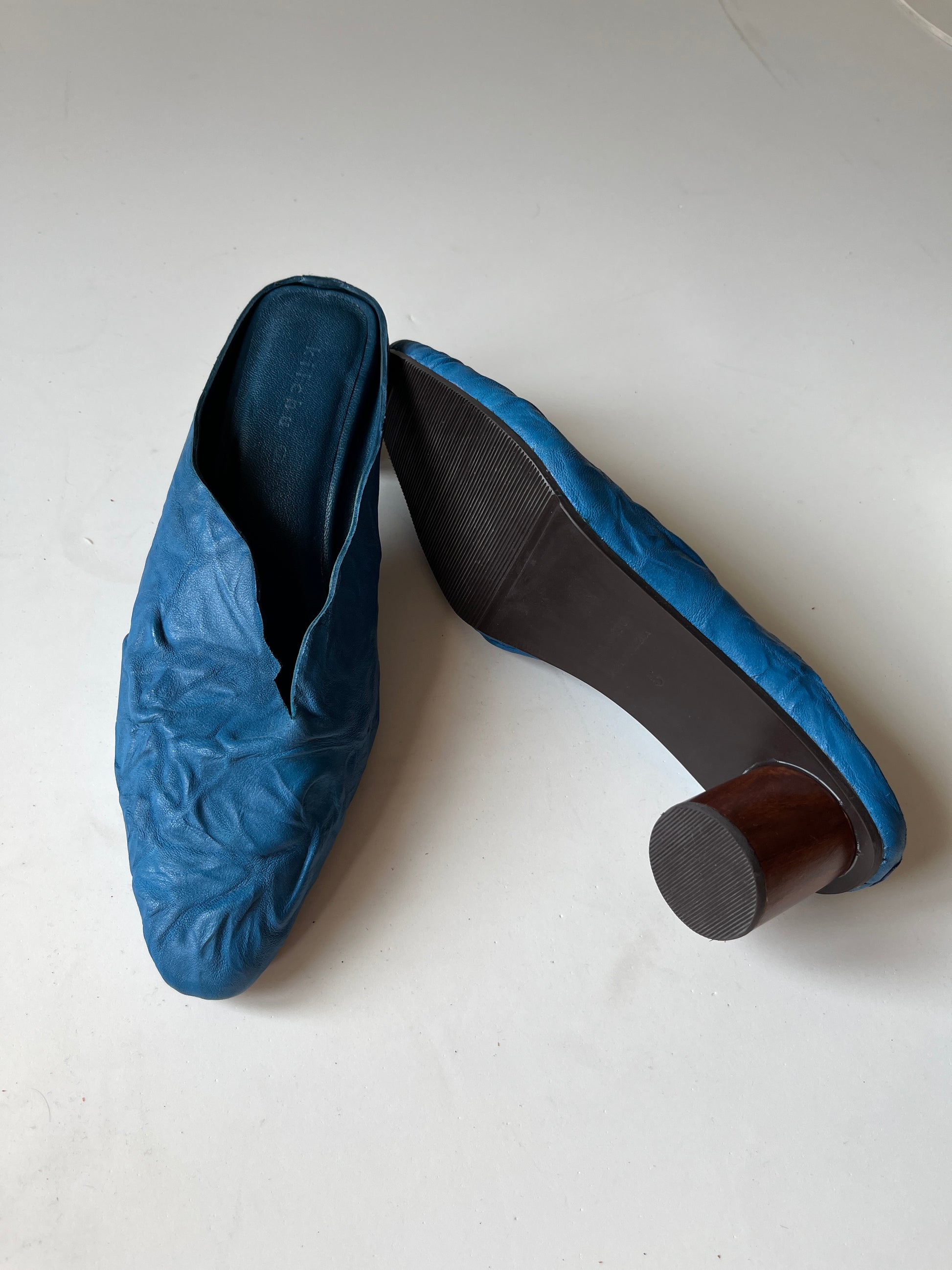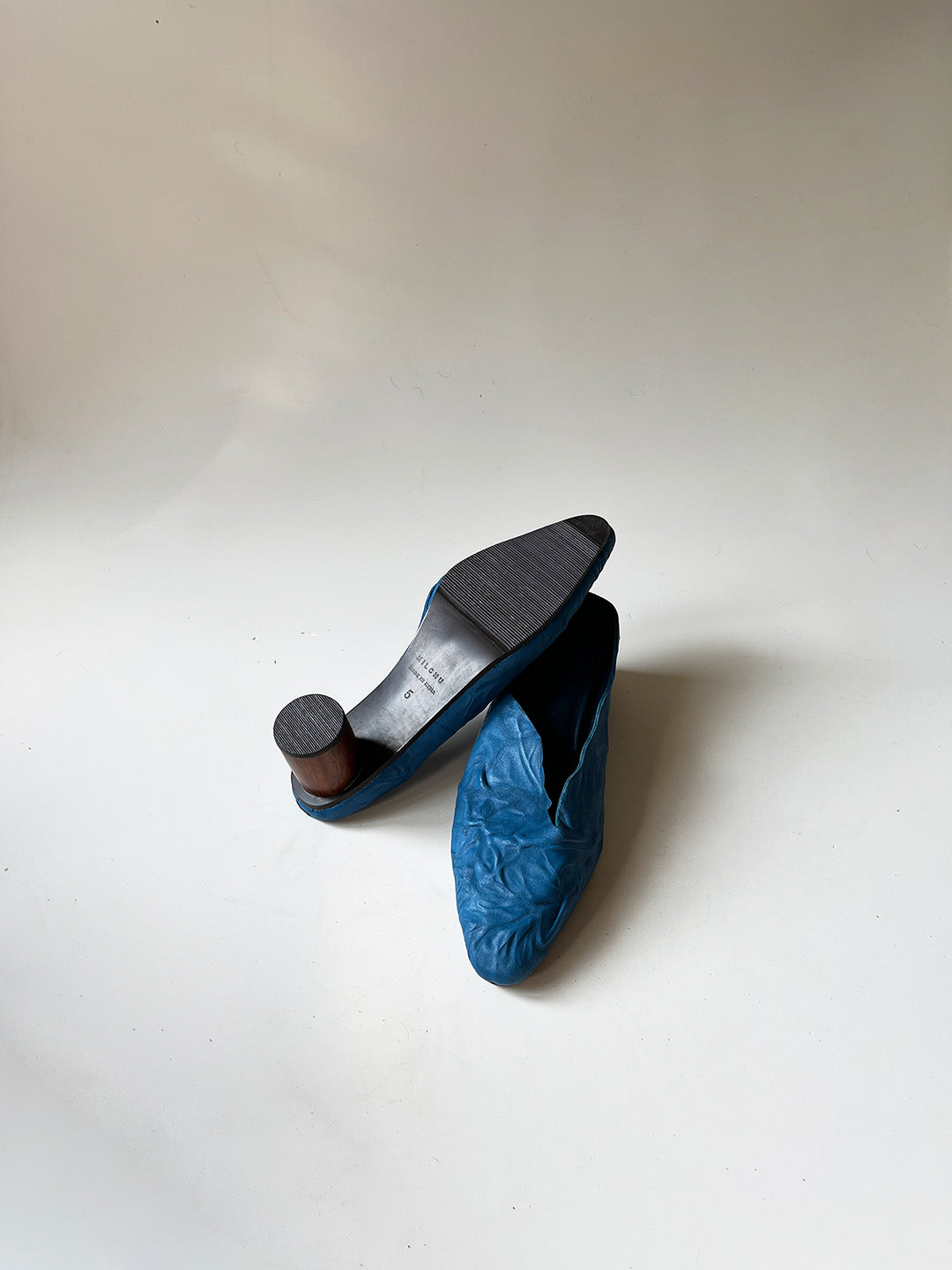 - Wood block heel covered in leather; height 2.25 inches - wedge style